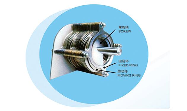 2、固定环和游动环之间形成的滤缝以及螺旋轴的螺距从浓缩部到脱水部逐渐变小。